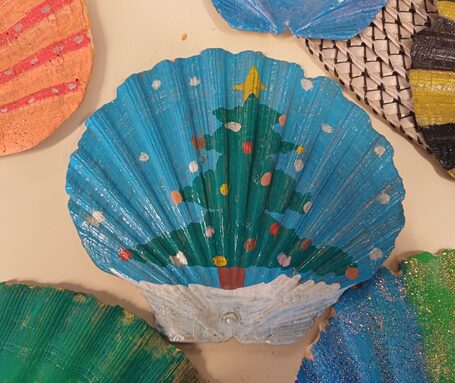 Pour égayer décembre, voici un travelling des coquillages décorés par les élèves de l'établissement.